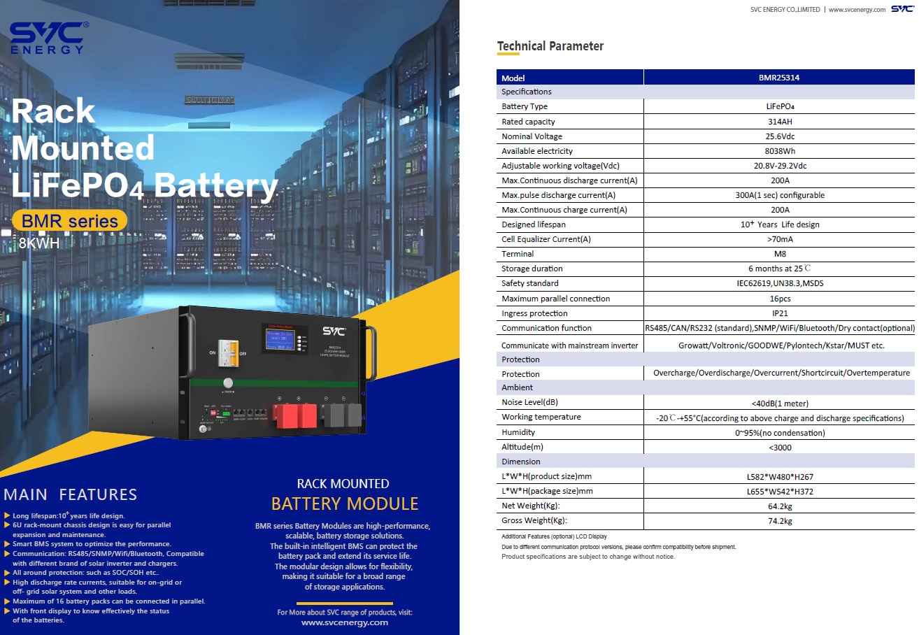 מצבר ליתיום SVC 25.6V 314Ah LiFePO4