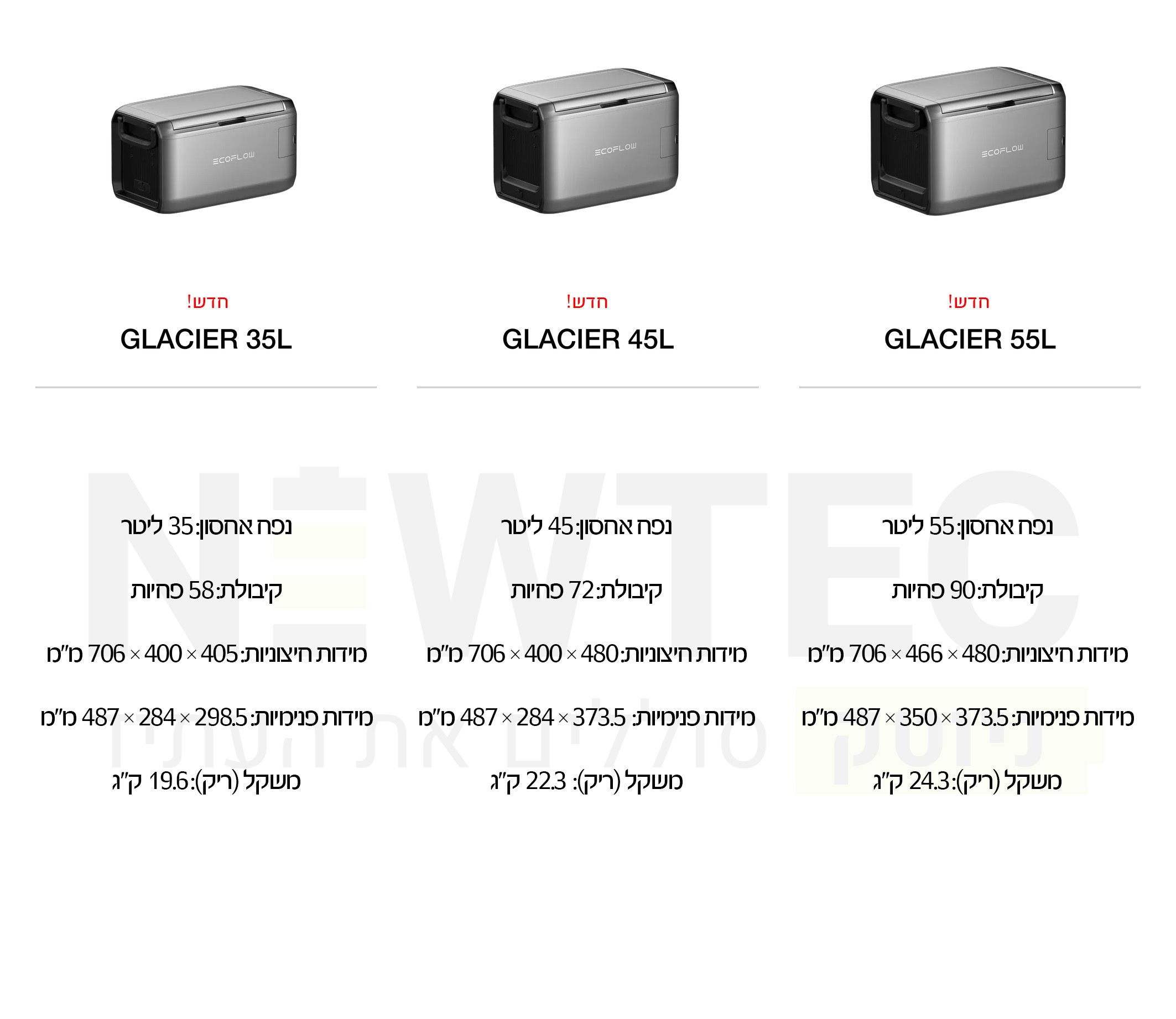 מגוון דגמים בגדלים שונים – 35L | 45L | 55L מותאמים בדיוק לצרכים שלכם, עם קירור עוצמתי, סוללה חיצונית לבחירה, שליטה חכמה באפליקציה ועיצוב קומפקטי שמוכן לכל הרפתקה.
